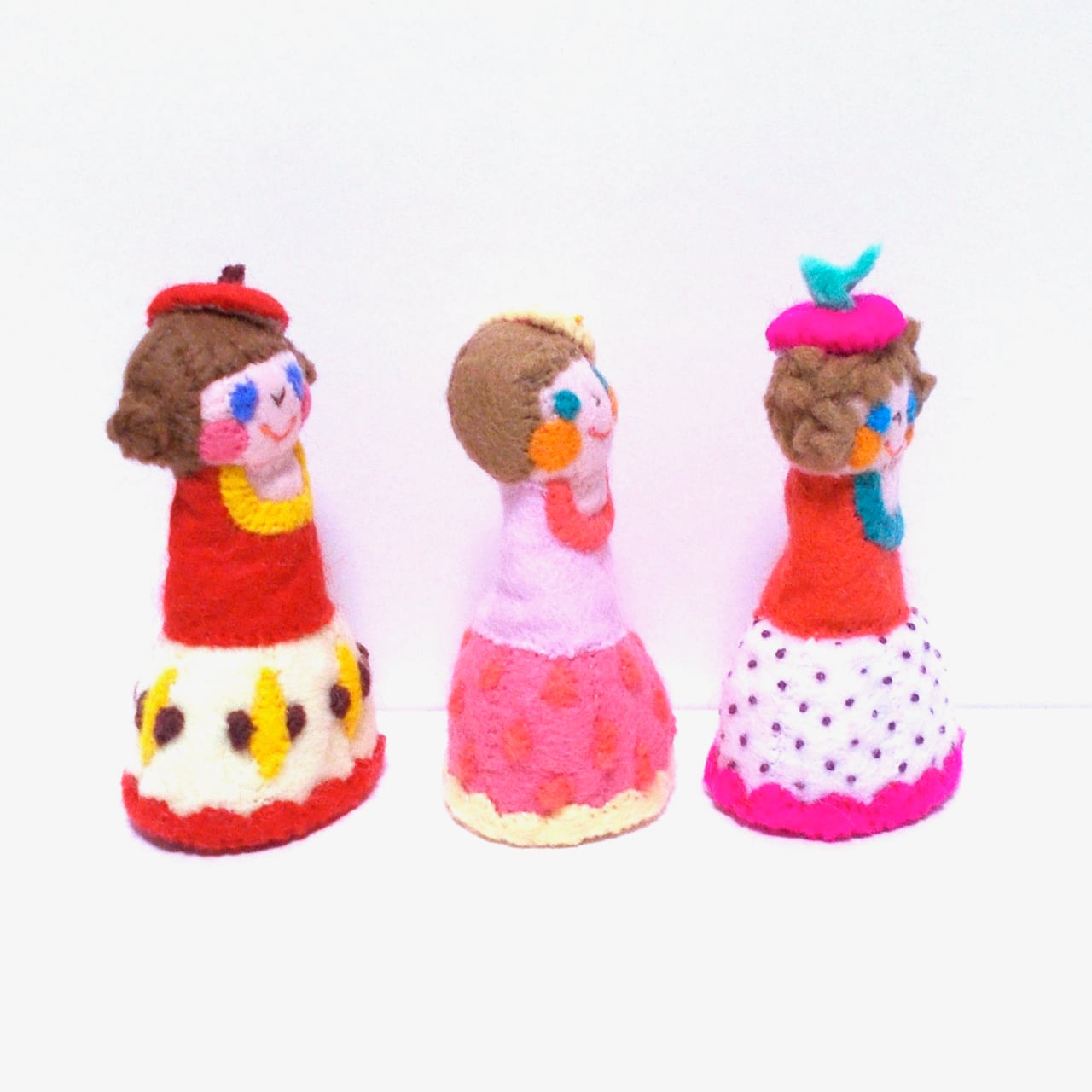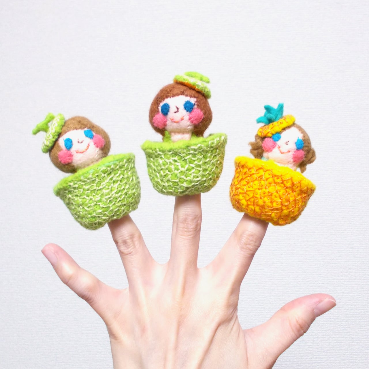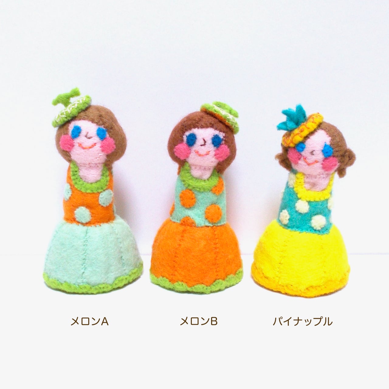 フルーツをひっくり返すとスカートに変身する指人形です。