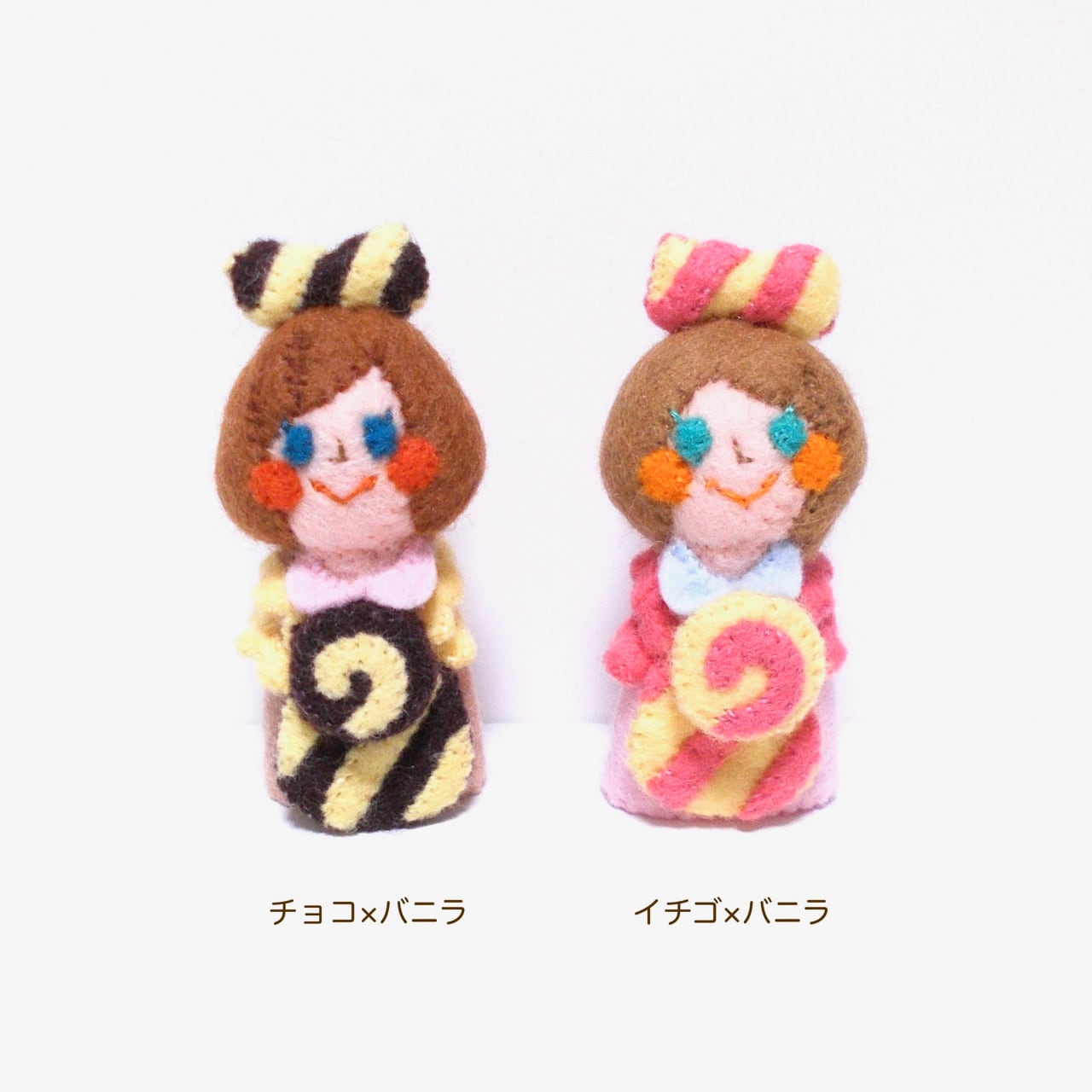 うずまきクッキーの指人形です。 素材:シートフェルト 高さ:約 7.2 cm 指の入れ口:直径 約 1.8 cm