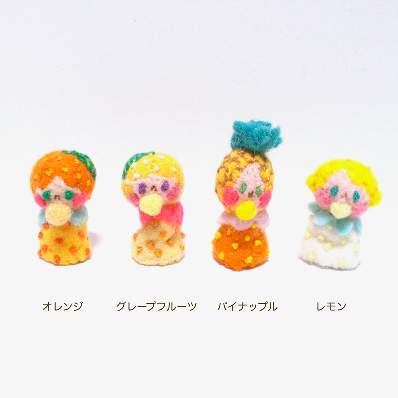 オレンジ 約 2.8 cm/グレープフルーツ 約 2.7 cm/パイナップル 約 3.6 cm/レモン 約 2.6 cm